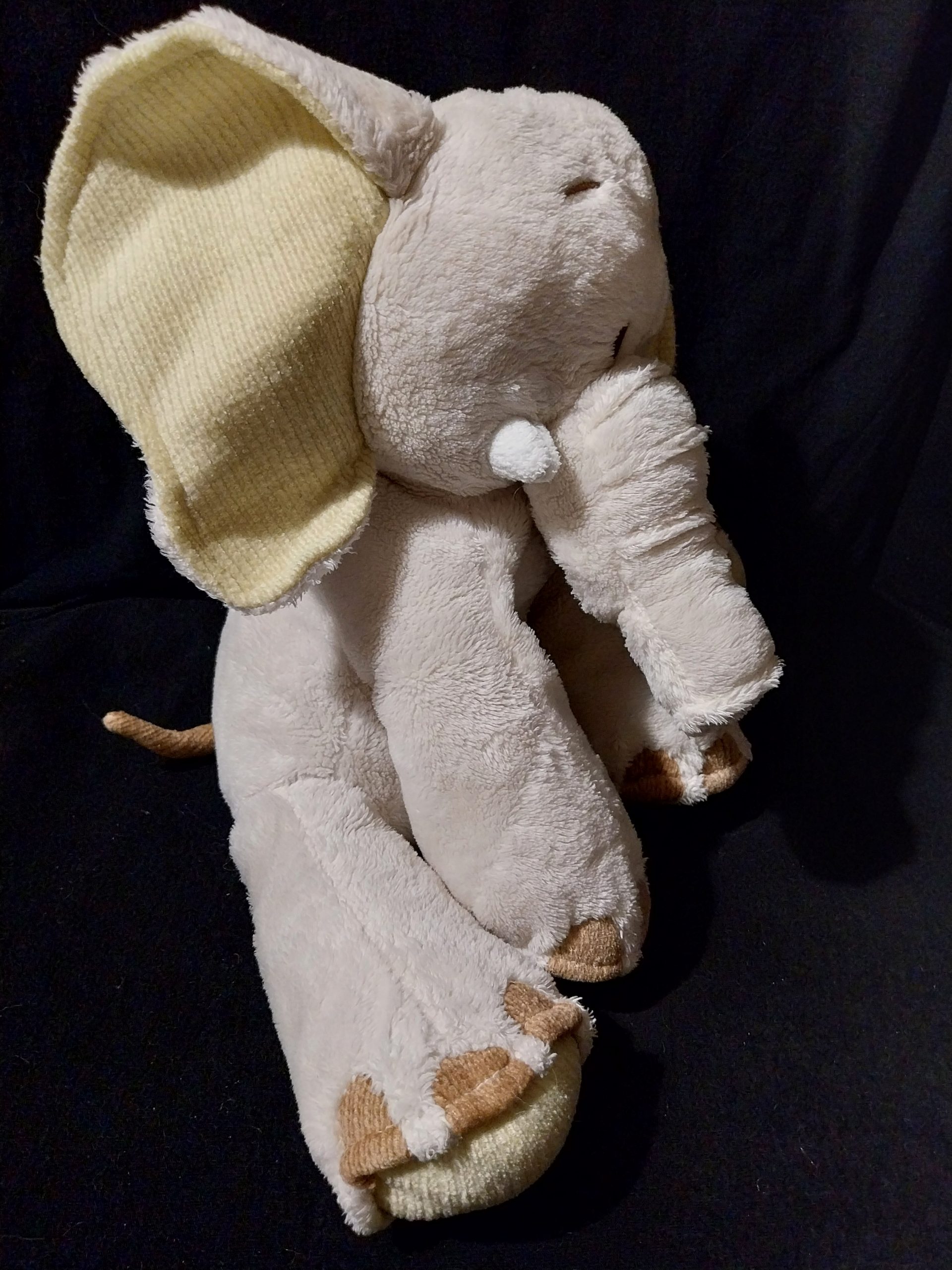 This Corduroy Elephant plush toy is 10 inches (25cm) in size and made from soft plush material. This rare Corduroy Elephant toy is part of an unknown collection and is suitable for various age levels and is washable, making it a great companion for children and Safari Animal lovers alike.