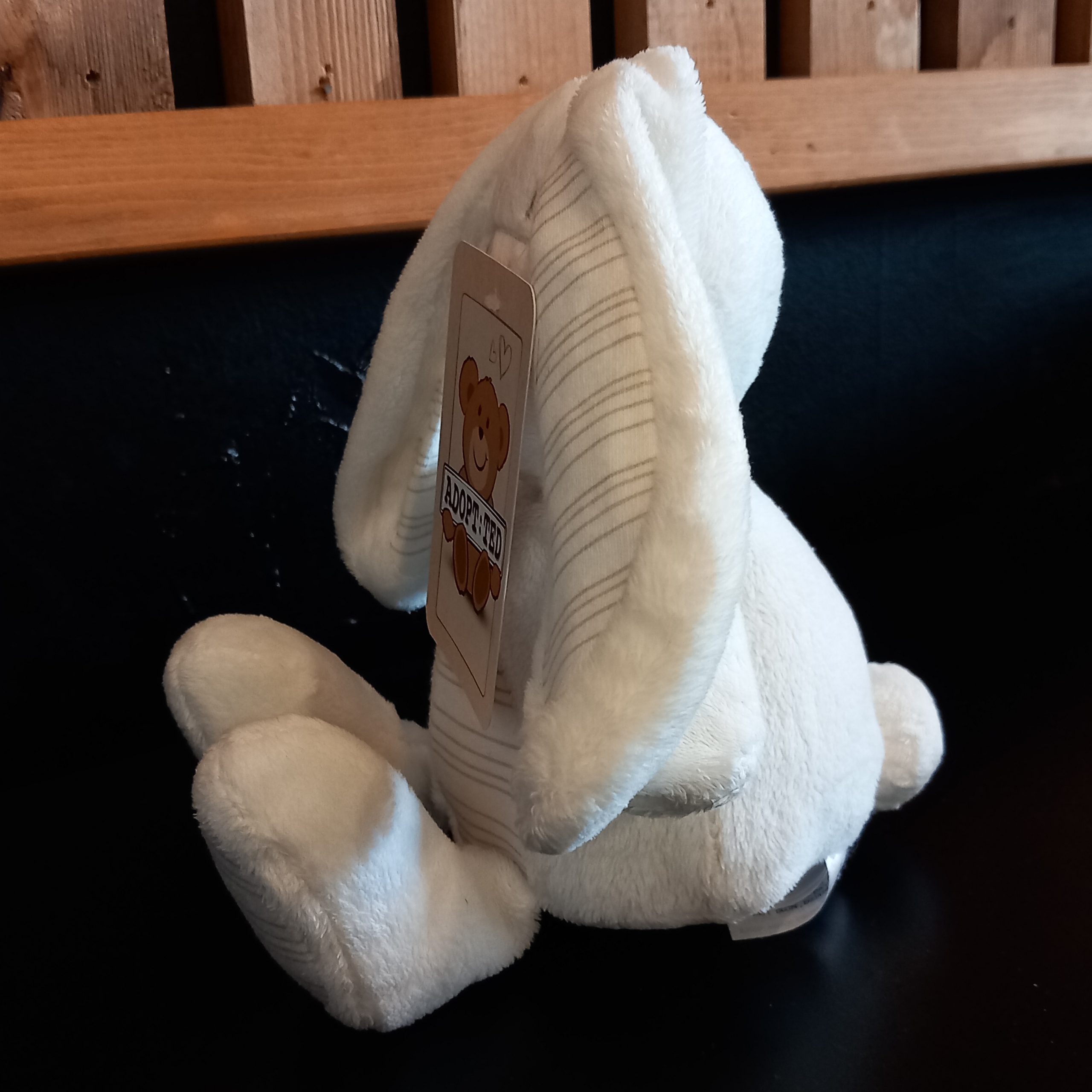 This cute white bunny rabbit plush toy is 8 inches (20cm) in size and made from soft plush material. This rare white coloured, stripey Bunny Rabbit toy is from the Next Retail Collection, is suitable for various age levels and is washable, making it a great companion for children and Bunny Rabbit lovers alike.