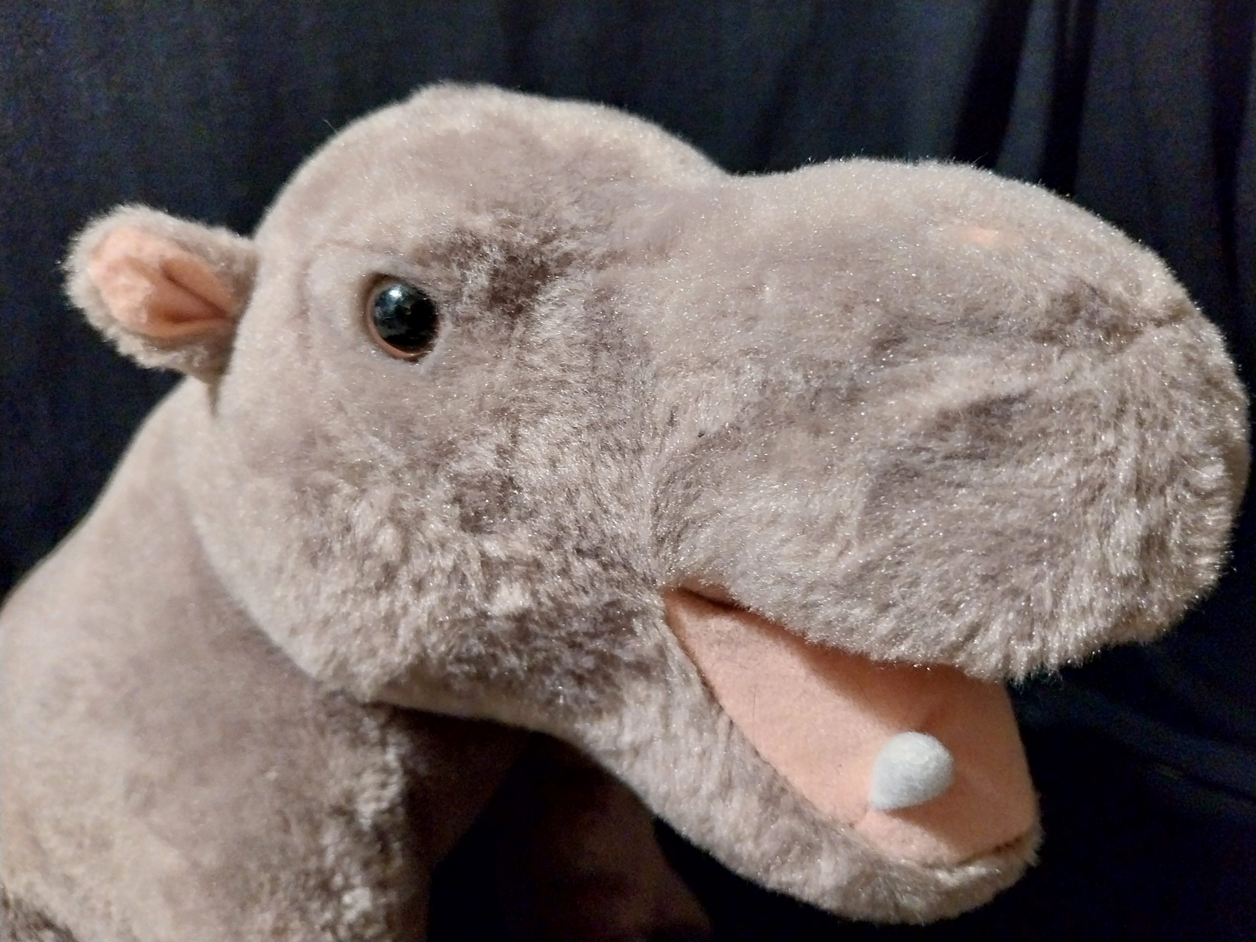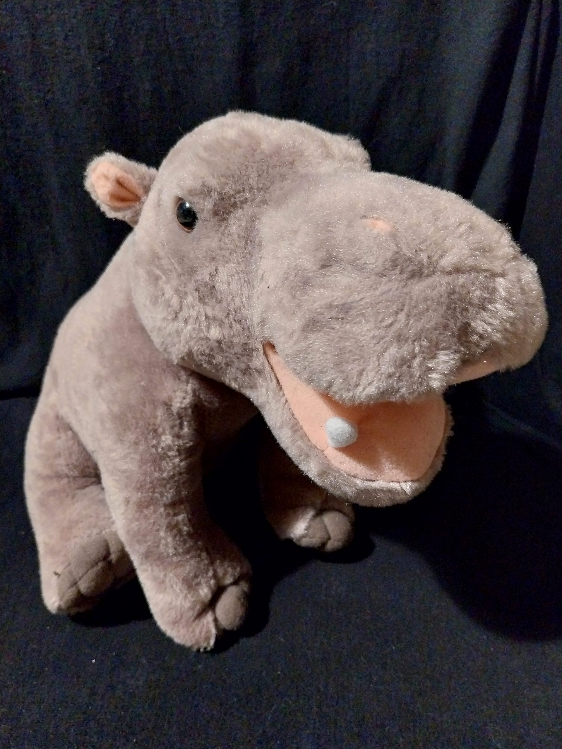 This Happy Hippo plush toy is 12 inches (30cm) in size and made from soft plush material. This rare Happy Hippo toy is part of the Ravensden collection and is suitable for various age levels and is washable, making it a great companion for children and Safari Animal lovers alike.
