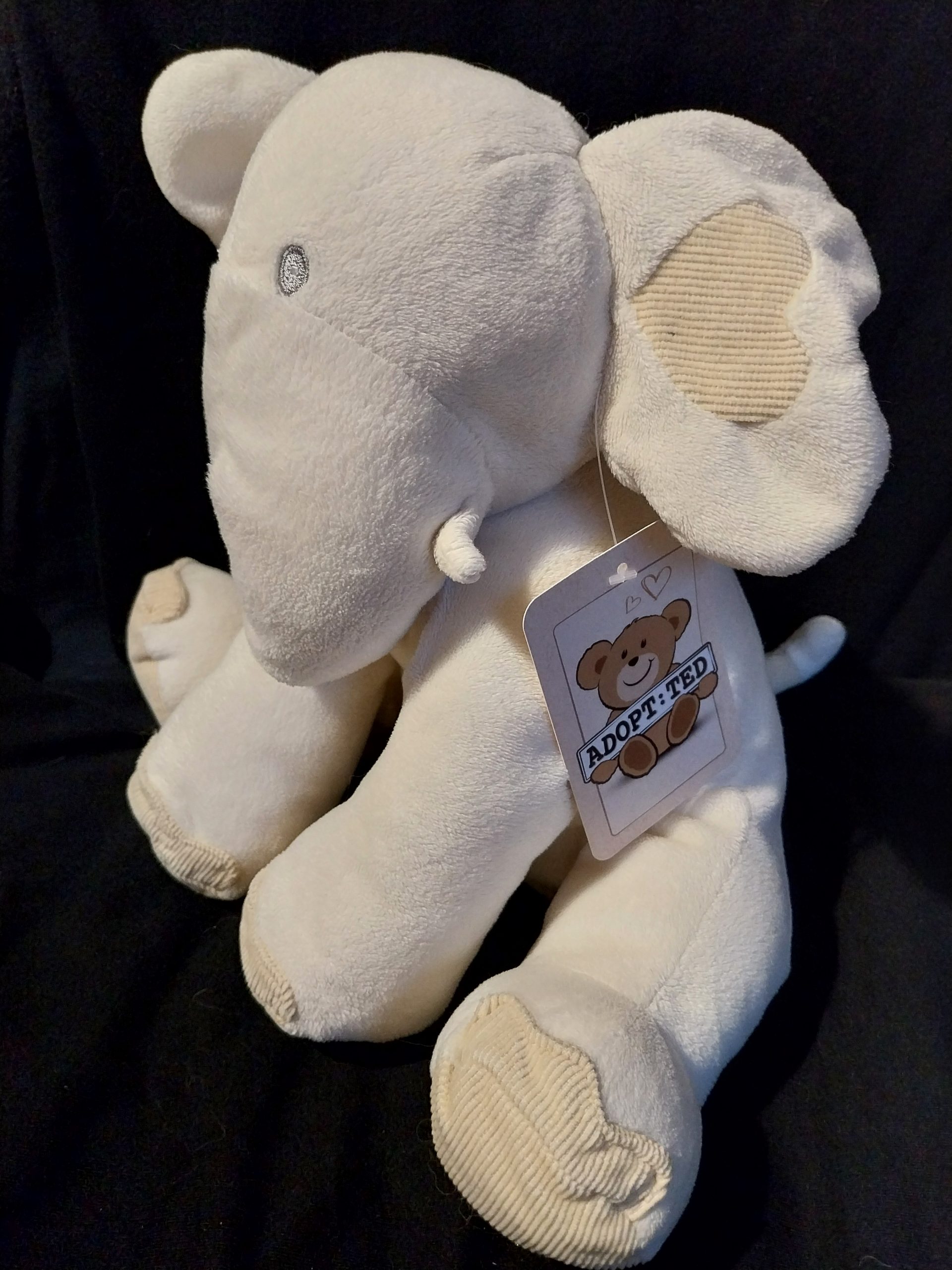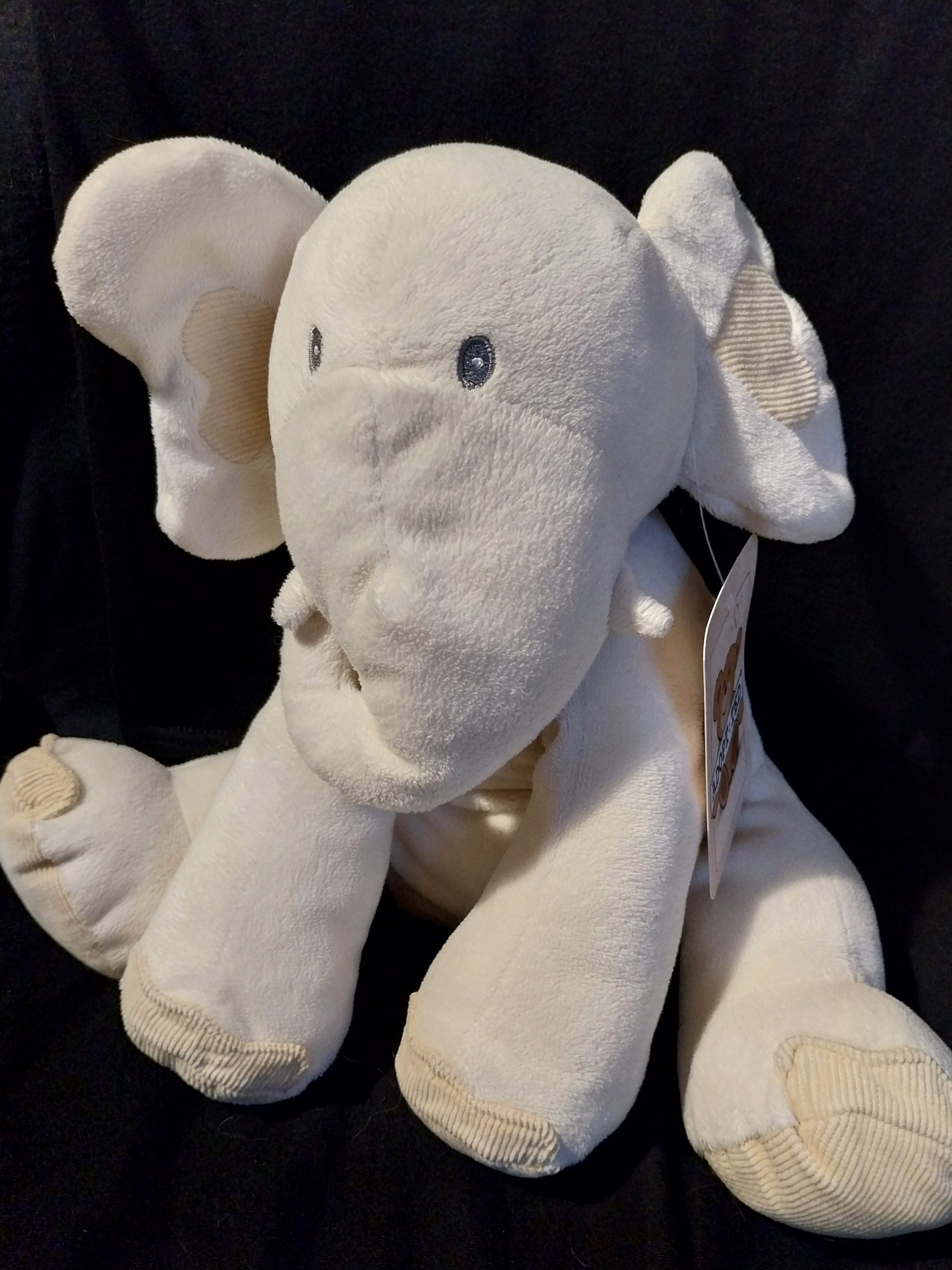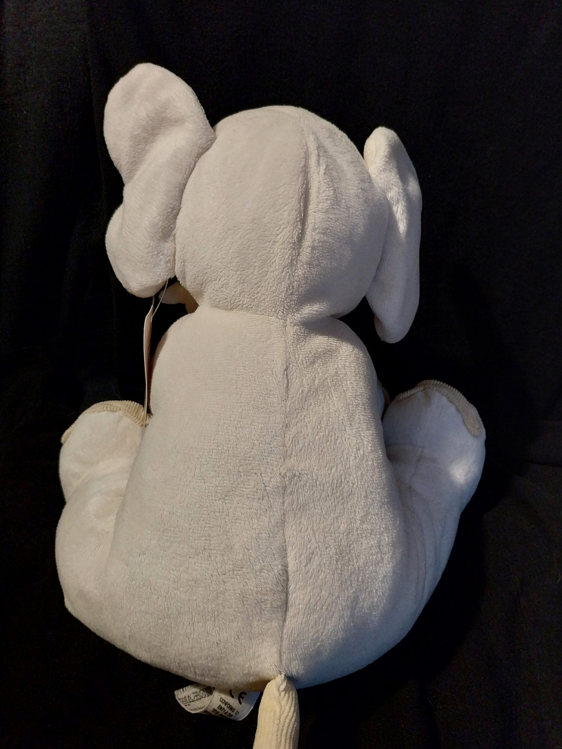 This Rattly Corduroy Elephant plush toy is 10 inches (25cm) in size and made from soft plush material. This rare Rattly Corduroy Elephant toy is part of the Marks & Spencer collection and is suitable for various age levels and is washable, making it a great companion for children and Safari Animal lovers alike.