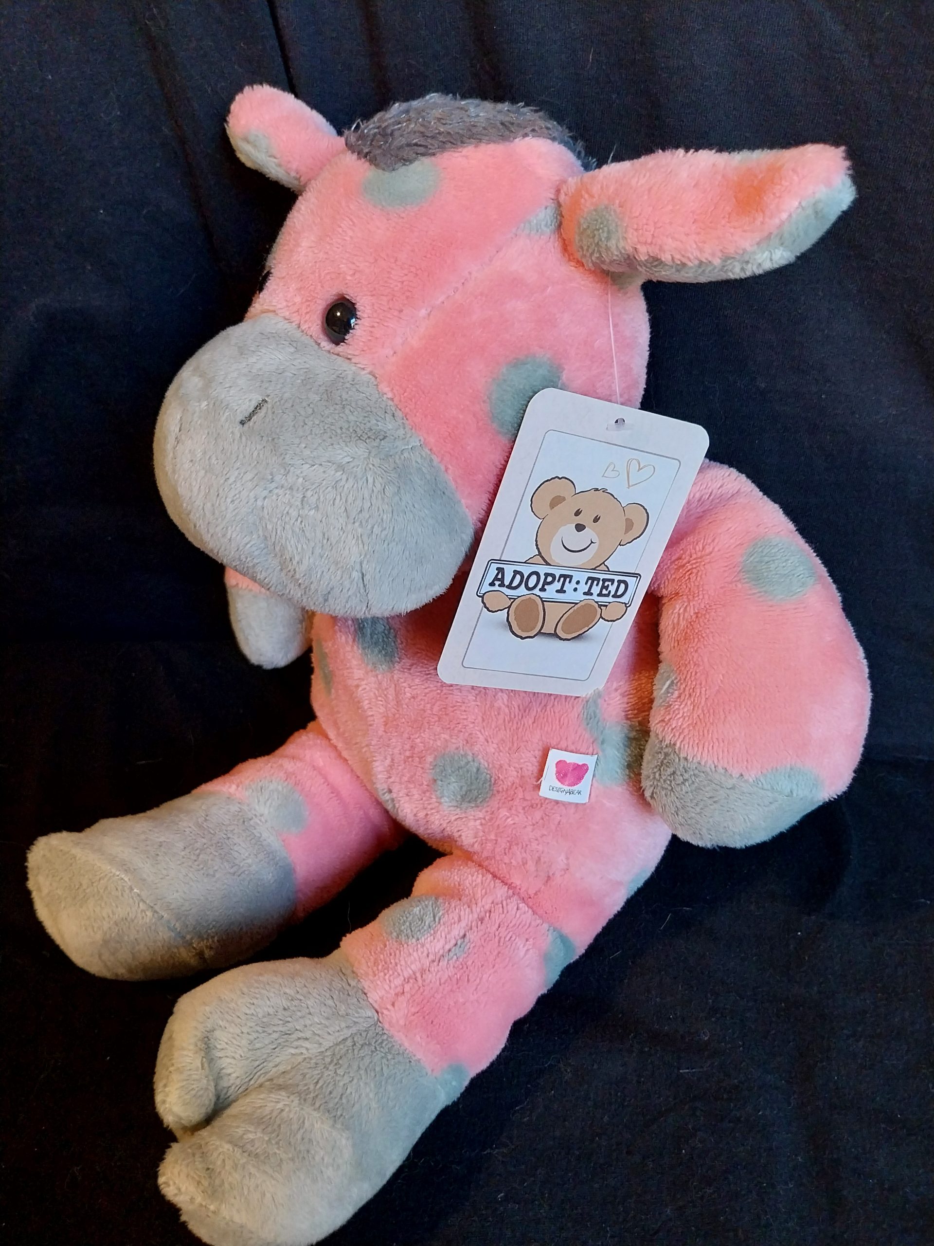 This Spotty Pink Pony toy is 15 inches (38cm) in size and made from soft plush material. This Spotty Pink Pony toy is from the Design A Bear Collection, is suitable for various age levels and is washable, making it a great companion for children and weird animal lovers alike.